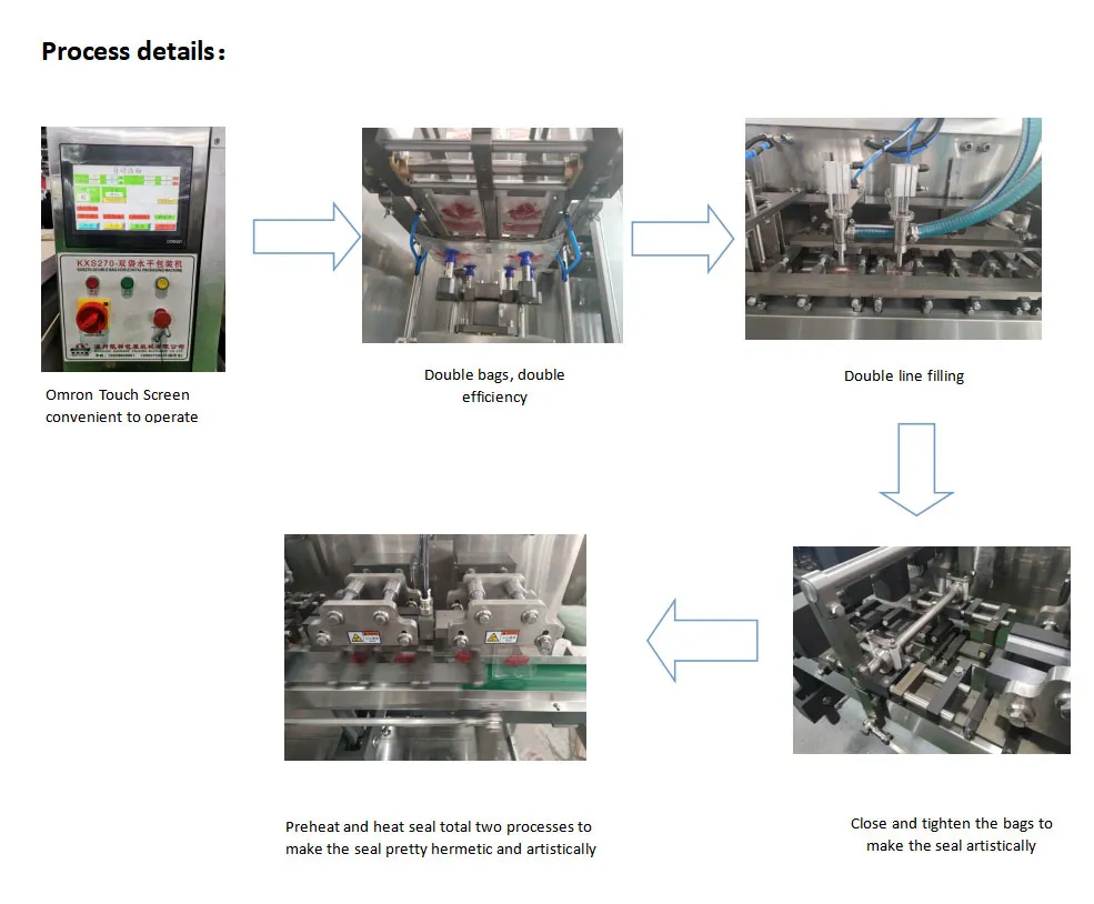 | Filling | Premade pouch loader | Seal premade pouch |